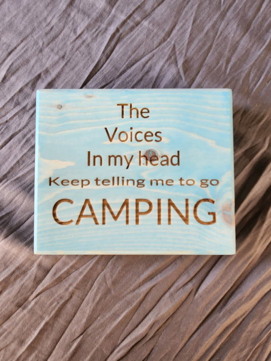 Block sign, The voices in my head keep telling me to go camping